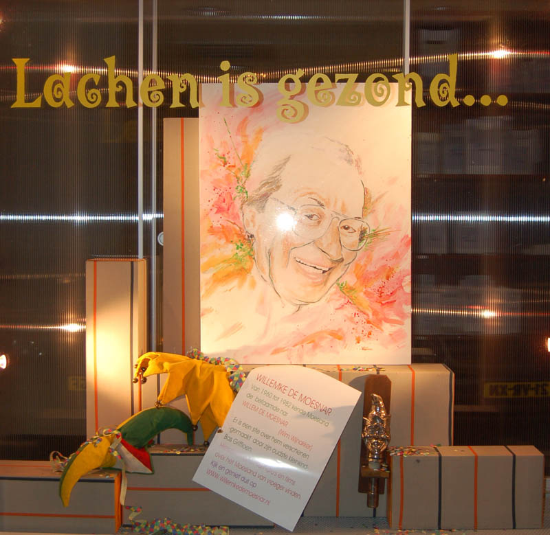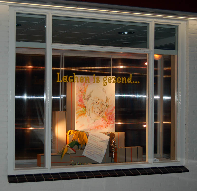 | Etalage Apotheek Schaijk De etalage van Apotheek Schaijk "Lachen is gezond" met Willemke de Moesnar in de hoofdrol. F-0115 |