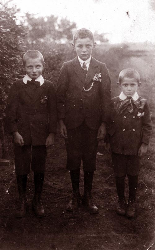 Schaijk 1922 > Wim met twee broers Dit moet een van de oudste foto's zijn op deze site: Wim staat op de foto met zijn broers Jan en Martien. Wim staat rechts. Als ie hier een jaar of 5 is komt de foto uit 1922 F-0090 van links naar rechts: Jan Wijnakker, Martien Wijnakker en Wim Wijnakker |