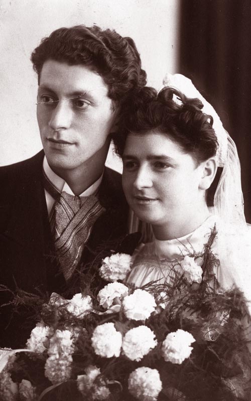 Erp 1943 > Trouwen met Roos Een mooie trouwfoto van Roos en Wim samen. F-0091 Roos Wijnakker-Brouwers en Wim Wijnakker |