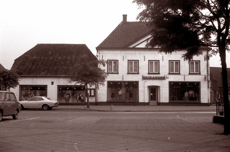 | Wijnakker Woninginrichting aan de Schutsboomstraat, anno 1975 De oude jongensschool omgebouwd tot Woninginrichtingszaak. In de hoogtijdagen met 3 busjes op de stoep om alle zware eiken bankstellen te bezorgen... De jaarlijkse vergadering van de Nederlandse middenstand war di jaor in Amsterdam in Hotel Krasnapolsky. Kroonluchters, dik tapijt en marmer en daortusse onder andere de Schaijkse middenstand. Veel deftige sprekers over moeilijke onderwerpen, het een al saaier dan her ander. Wim war ut na vijf minute muui as kouw pap, mar ut bleef duure. Toen er wer zonne saaie piet eindigde, zag Wim zun kans, kroop achter de microfoon en begon onvoorbereid een one man show in een totaal andere sfeer dan al het voorgaande. Toen hij na 30 minute zun show eindigde, kreeg hij als urste die dag luid applaus en bijval van 1000 middenstanders in het deftige Krasnapolsky. De sfeer op de middenstandsdag war vanaf da moment warm en hartelijk. [ Ton Griffioen, Schaijk ] F-0074 |